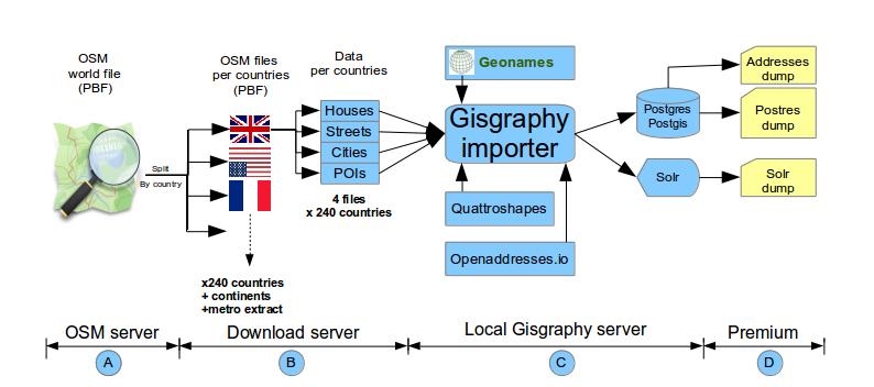 Welcome to Gisgraphy download server. Since 2006, Gisgraphy is a free opensource framework based on Openstreetmap, Geonames and Quatroshapes data that offers the ability to do geolocalisation, geocoding, and reverse geooding via Java APIs or REST webservices.